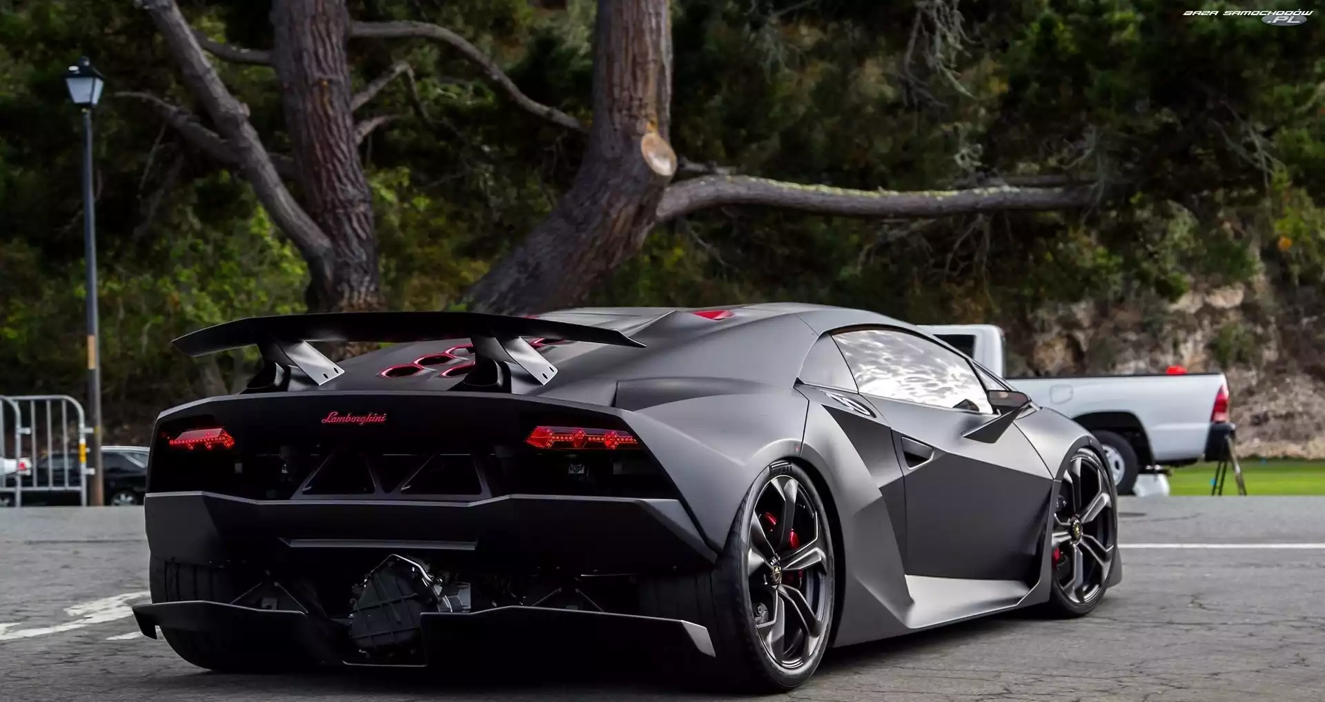 Samochód: Drzewo, Ulica, Lamborghini, Czarne, Sesto Elemento