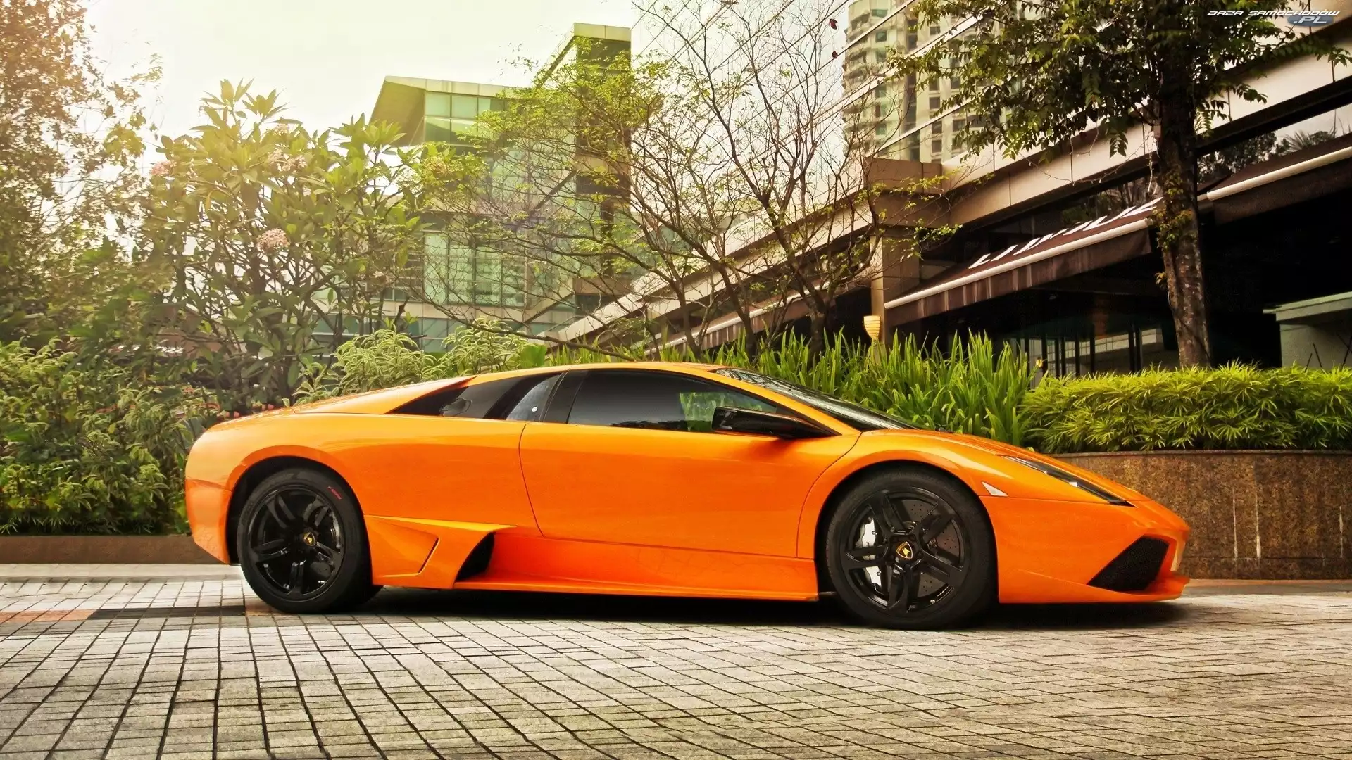 Samochód: Murcielago, Drzewa, Lamborghini, Dom