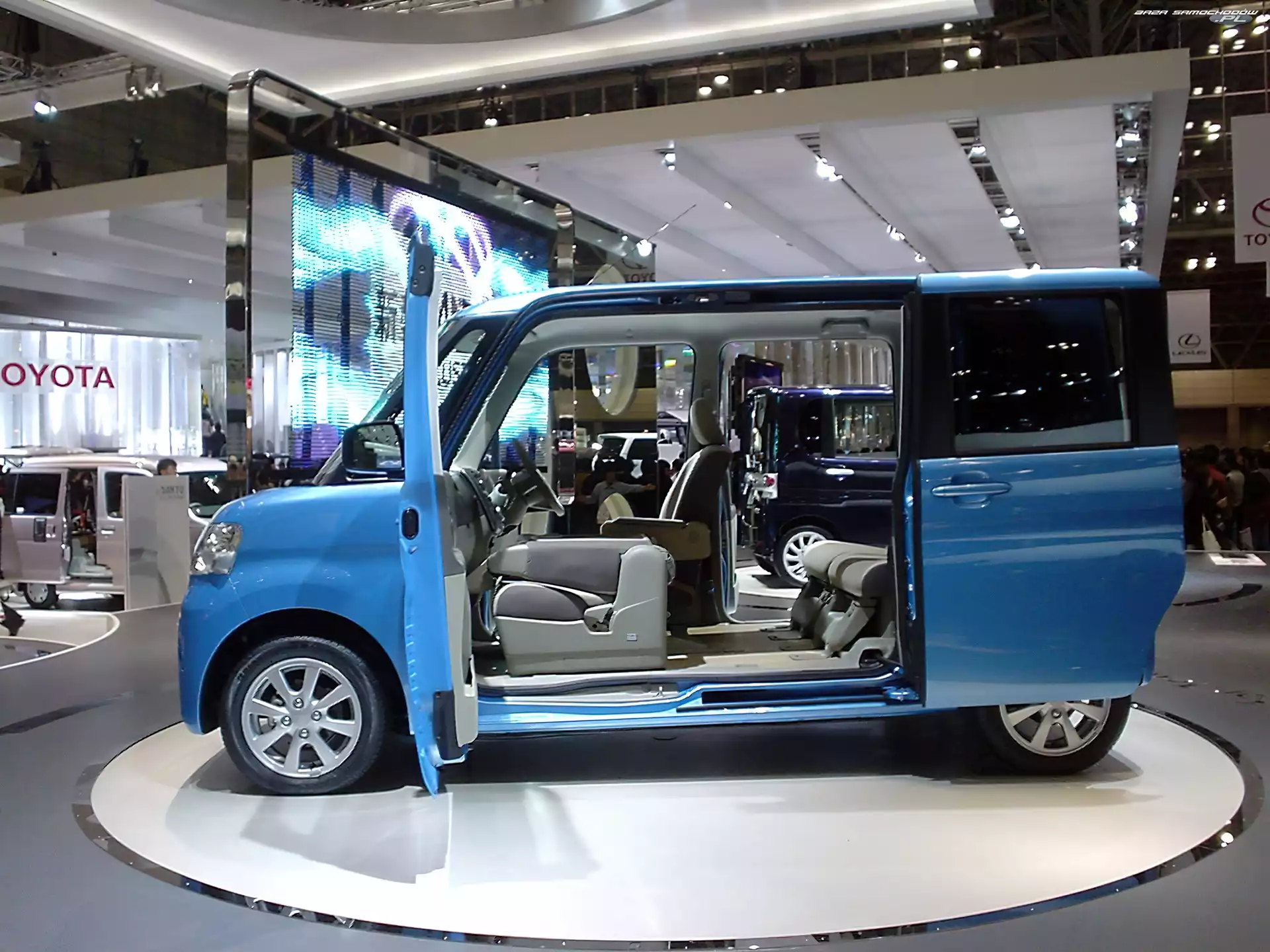 Drzwi, Daihatsu Tanto, Rozsuwane Koła, Prezentacja, Daihatsu Tanto Lampa, Białe, Daihatsu Tanto Pasażerska, Daihatsu Tanto, Przestrzeń Reflektory, Błękitne, Daihatsu Tanto Dealer, Daihatsu Tanto Przestrzeń, Daihatsu Tanto, Reklamówka Bagażowa, Daihatsu Tanto, Przestrzeń Zderzak, Tył, Daihatsu Tanto Daihatsu Tanto, Custom Car, Daihatsu Tanto, Japan